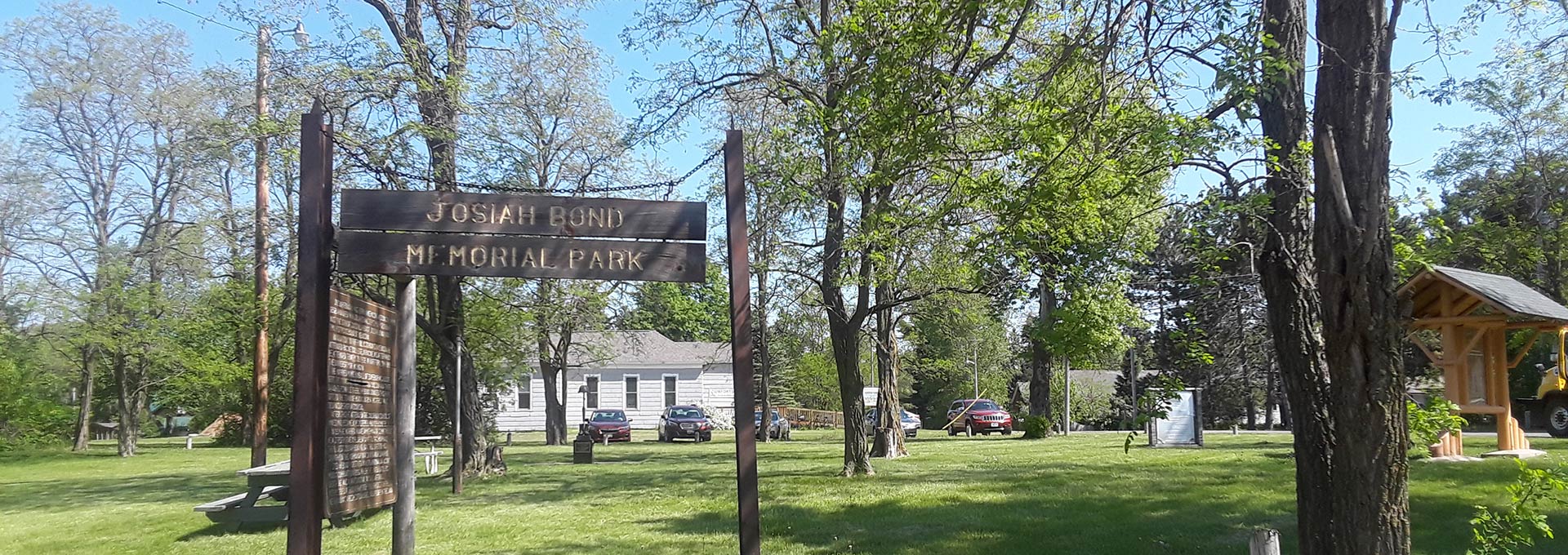 In 1887, Josiah Bond II first came to Minong with his wife, Mamie (Kimball). They had 4 children, sadly Mamie died in 1896 in Superior, WI.  Mr. Bond donated this park site to the Town of Minong in 1896. Josiah remained in Minong for a few more years before he moved to Colorado to attend the Colorado School of Mines.
